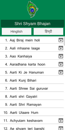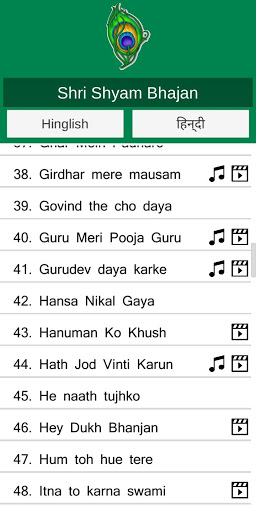 Shree Shyam Bhajan app contains shyam bhajan for khatu shyam kirtan. Shree Shyam Bhajan (Shri Khuatu Shyam bhajan) app contains 135 bhajans in Hinglish and Hindi at present. Some bhajans have youtube and gaana links set which opens those songs in respective app or web browser.