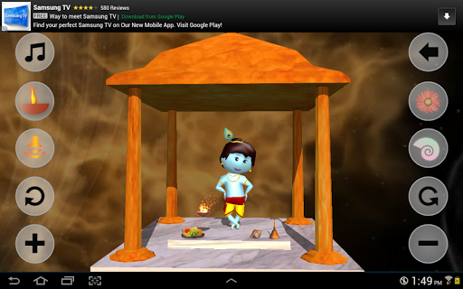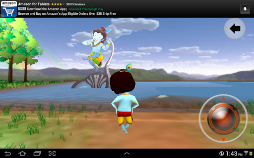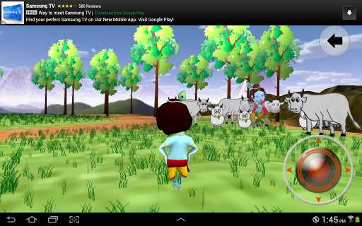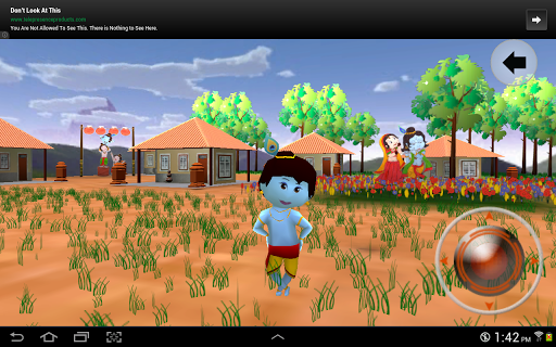 This app provides a 3D visualization of some of the colorful life events of Shri Krishna. Baby Krishna takes you around the small picturesque town of Gokul for a glimpse of :
