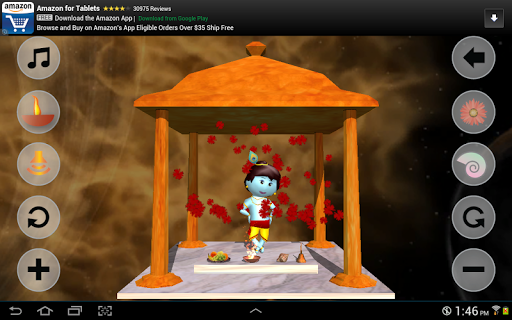 One click will take you to the temple of Krishna in the cosmic backdrop of stars and planets. This temple along with an ambient chanting of Om provides the perfect environment for your daily prayers :