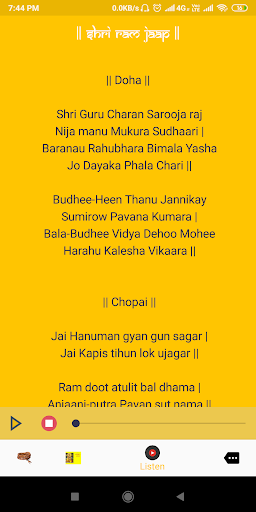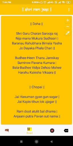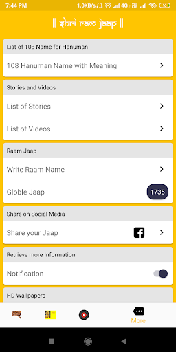 With this app, you can Jaap name of lord ram, read the article, Hanuman Chalisa, view video and listen to bhajan and Hanuman Chalisa