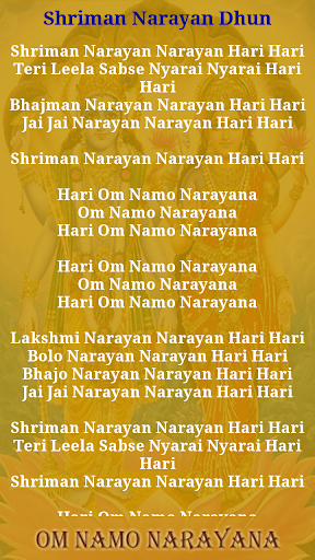 So download it and listen Shriman Narayan Narayan Hari Hari Dhun to invoke divine blessings of Lord Shri Vishnu (Narayan).