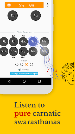 3. If you want to hear, how the swaram sounds like in the selected kattai, tap the swaram button. You can stop it by tapping again.