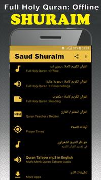 - You can listen to Holy Quran recitation by Sheikh Saud Shuraim at anytime without Internet Connection. Full version is here.
