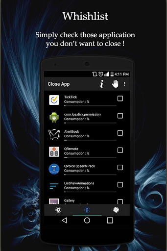 ShutApp Battery Saver is a very useful application to shut your background applications and boost your battery life. Closed apps will not restart which boost battery life. This makes ShutApp Battery Saver an extraordinary battery saver.