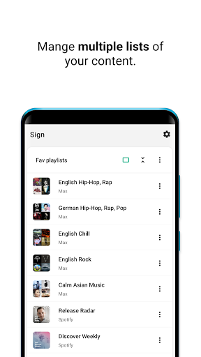 Add your favorite Spotify content to Sign and organize them in lists.