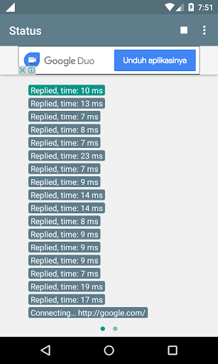 → In some cases, you may ever use a chat app (e.g. BBM) to PING on your friends, only to find out your current network state whether slow or fast, good or bad. This action may disturb them. By using this app, you are no longer to do that. Just tap