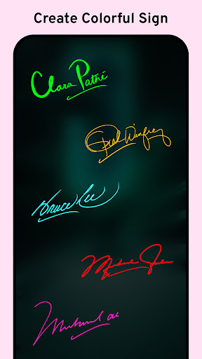 Signature Creator - Signature Maker is the one of the best android application to create easy signatures as well as perfect signatures. Signature Generator and easy signature maker pro will make you happy for sure as it will work as signature maker assistant. This fingertip art handwriting signature application can be used for art signature practicing on an electronic device rather than by using old techniques on paper pad and writing notes on books. There is no need of pen and ink to create cool signatures. This signature generator lets you play with your words because it is also a signature composer and an autograph maker. Signatory can choose auto or manual way to generate glow signature and fancy signature.