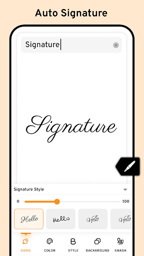 Signature generator app is very easy to use and perfect app. You can adjust or set your signature by pinching, dragging, zooming and rotating your signature with the help of two fingers. There is no need of pen and ink to generate cool and stylish signatures. This signature generator permits you to create a signature from text and moreover signature with paint tool. This signature generator is not indirect for any sort of legitimate use. Signature generator app will run on any android device mobile or tablet to make a stylish and cool signature. This is use the email signature and many user question of how to make a signature solve this application. This is signature on picture app of signature practice app signature app for documents signature signing app. This is signature designer also signature design app like signature generator app.