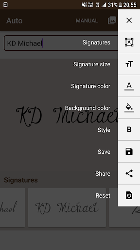 * Style: You can make your signature Bold, Italic and Underline.