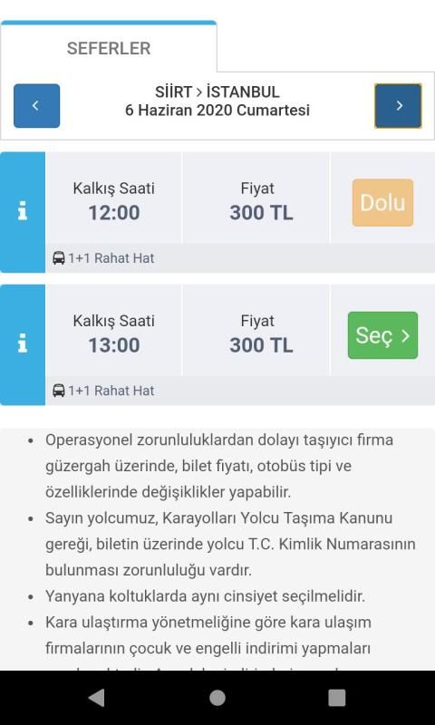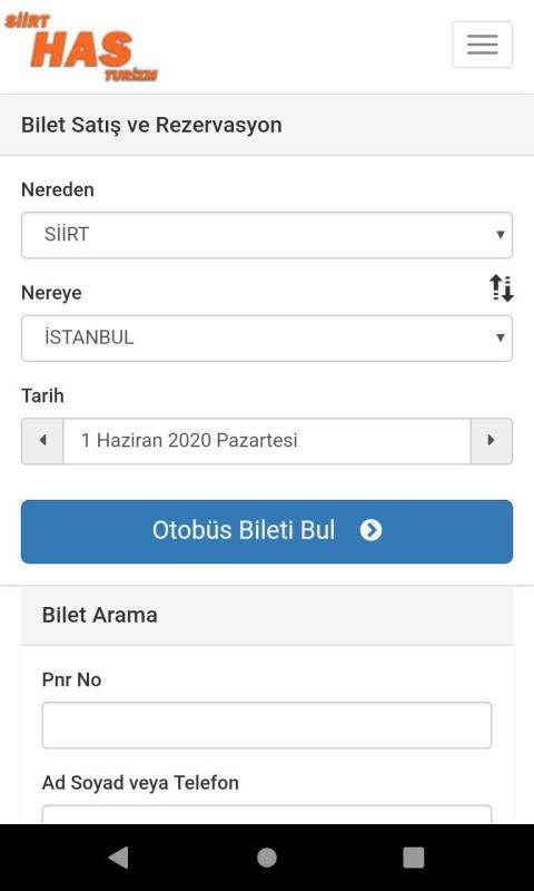 Siirt Has Turizm'in şehirlerarası ulaşım biletlerinin satılmasını sağlayan bir Android uygulamasıdır.