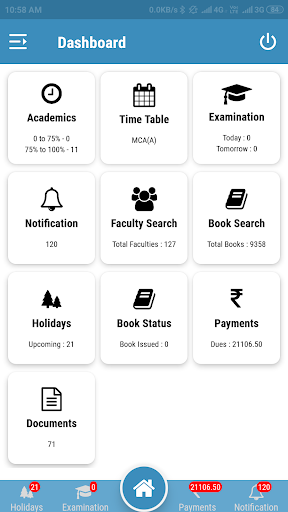 By using this app faculties can see their own attendance, can also take students attendance in the class and can view each students by their name or sic number & Students can view their own attendance as well as academic details, can make payment also and a lot more things also available.