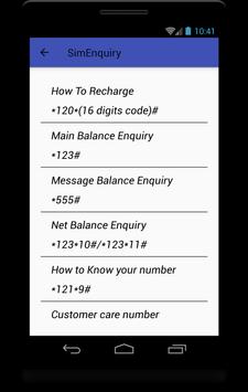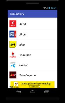Sim Enquiry Numbers application helps the Indian prepaid telecom users to find the numbers for specific operations like Recharge, Main, Message, Net Balance enquiry, Finding own number and Customer care number. As of now app supports telecom operators like Airtel, Aircel, Idea, Vodafone, Uninor, Tat Docome, BSNL and Reliance.