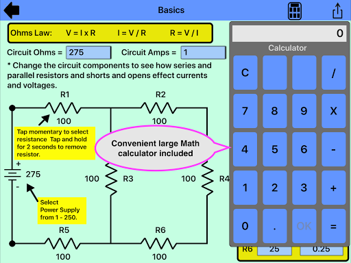 - The "Basics" screen provides a great way to reinforce your knowledge and see the effects of "Opens" and "Shorts".