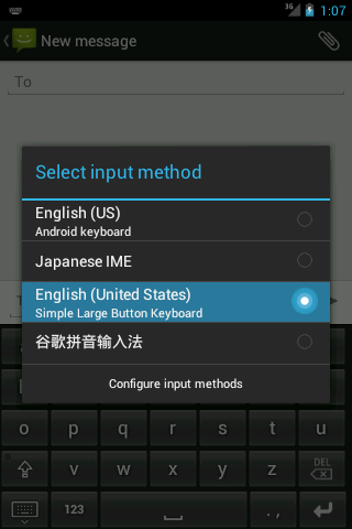 Select 'Simple Large Button Keyboard' as the preferred input method