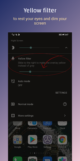 Tired of common gray color in your phone screen now you can customize overlay color to yellow color to rest your eyes and dim your screen.