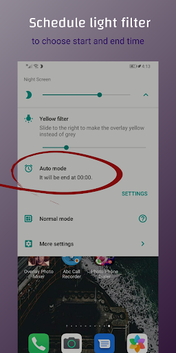 Automatically switch to day/night shift mode, choose start and end time e that dimly light your screen to take care of your health.