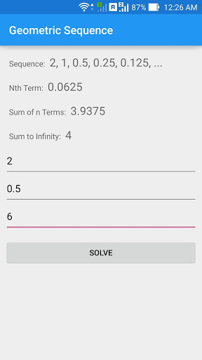 a geometric sequence by providing a value for the initial term, common ratio, and the index of the term.
