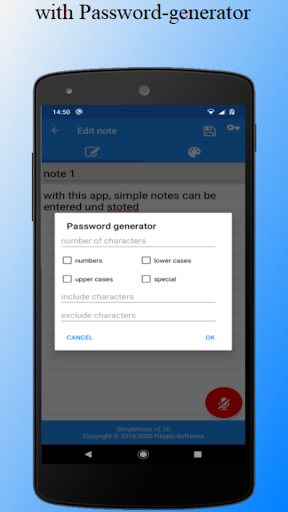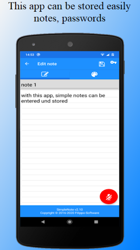 This app can be stored easily notes, passwords and sketches.