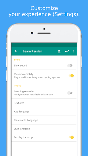 ✓ Adjust the quiz and flashcards settings for Persian to English, English to Persian