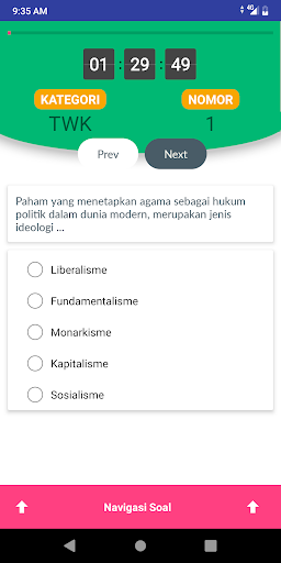 Halaman Soal yang dilengkapi dengan : Timer dan Navigasi Soal.