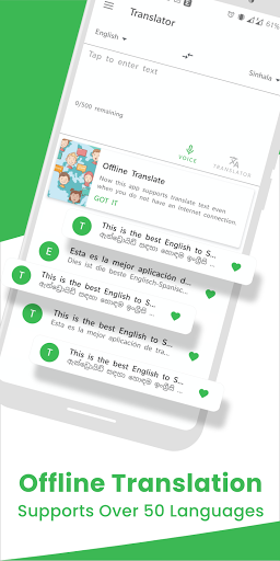 Do you want to learn new language using one of the most useful free translation app? How about translating words from Sinhala to English and vice versa? The new English to Sinhala translator - Offline translator app is an ideal option for you. Simply enter any words and sentences in Sinhala and hit the translate button to get accurate results. Learn how to speak the English vocabulary words using the voice output and get things done easily without any communication barrier.Try English to Sinhala translator - Offline translator today!