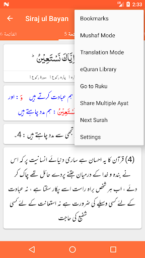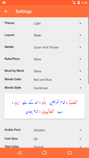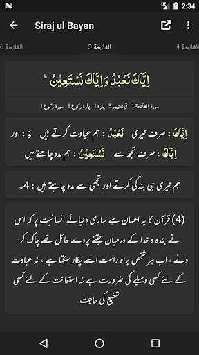- Ability to show/hide Word by Word, Quran Translation (Tarjuma) and Tafseer