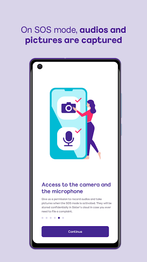 - Register evidence: on SOS mode your telephone records automatically audios and take pictures that are stored on Sister’s cloud.