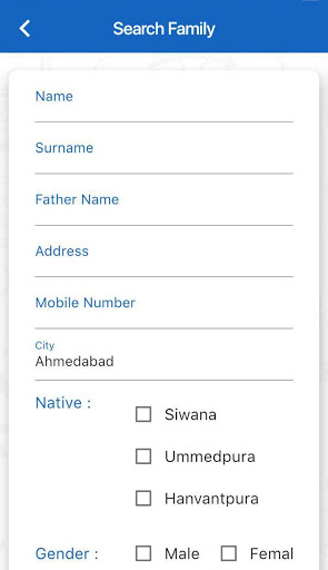 Users can Search family by their Mobile Number, Name, Native.