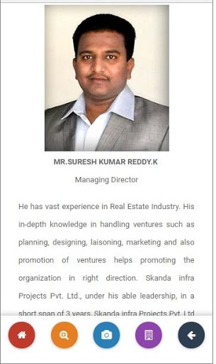 “Skanda Infra Projects was established in 2008 and Registered Company with The Confederation of Real Estate Developers’ Associations of India (CREDAI), dealing with realty services such as construction of apartments and flats for residential purposes. . The focus has been on the development of premium residential, commercial, retail, integrated townships, lifestyle gated communities Built on the foundation professionals and every stage is reinforced with dedication to give every customer excellent value for money. And determination of delivering homes within scheduled time frames. Thus creating valuable trust and confidence to the customers. As of now completed 19 projects and nearly 400 Houses and one commercial project with above 300 shops is under construction. Now company overall customer base is above 13,000. Company has started operations in Anantapur with housing and open plots project in 2014 .The company also undertaking projects in other big towns like Nandyal, Tadipatri in Andhra Pradesh