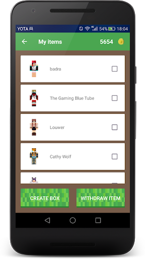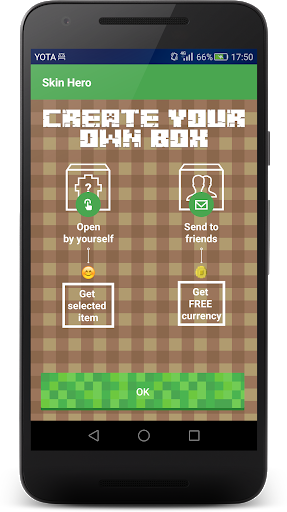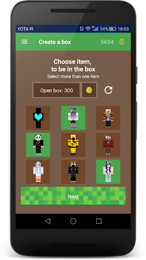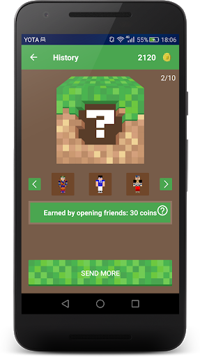 Choose the skins that you like from the collection, put them in boxes and exchange boxes with your friends. Get the coolest skins from your friends and earn from the boxes, opened by your friends.