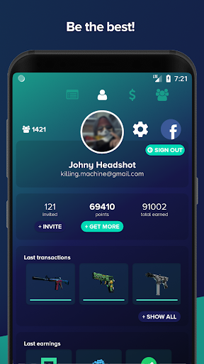 Reedem points for choosen CSGO skins!