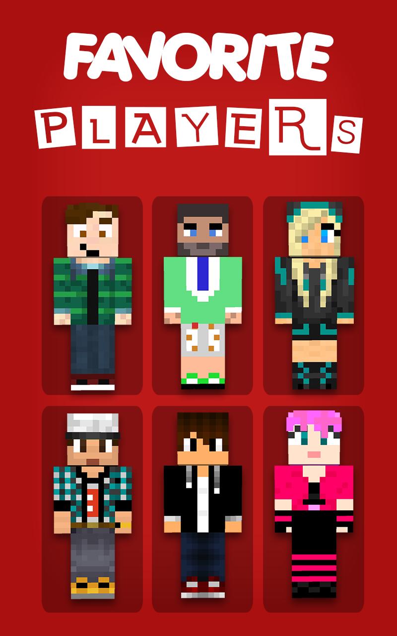 Skins Youtubers for Minecraft is a great collection of cool skins that you can download for free. Exclusive and accurately traced the youtuber skin you can use now! No need to looking for favorite youtubers skins, in this app over 200+ skins by nicknames and you probably will find there what been looking for.