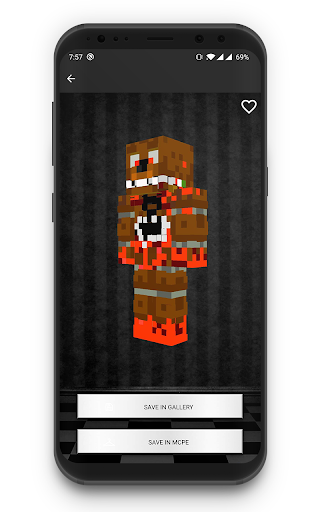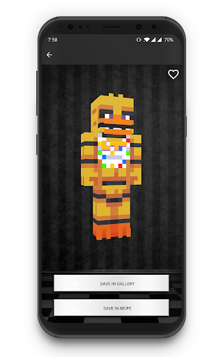 DISCLAIMER: Skins for FNAF - Changer for MCPE is an unofficial app. This application is not affiliated in any way with Mojang AB. All rights reserved. According to http://account.mojang.com/documents/brand_guidelines