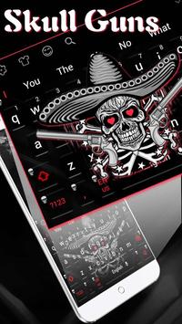 cool skull guns keyboard support typing by recognizing your voice and speech. We aim to create the best keyboard, so we believe both fascinating user interface (e.g., black and skull design) and useful functions (e.g., auto words correction, smart words prediction, speech to text, etc.)