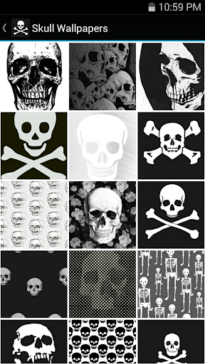 Whatever the skull means to you, you'll be sure to find a unique skull background in this app! There are creepy skull images and beautiful skull images. There are realistic skulls and colorful cartoon skulls. There are single skull images as well as skull patterns, in both black and white and vibrant colors.