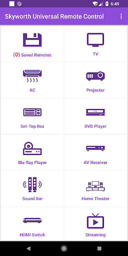 Once you have Configured this Skyworth Universal Remote app with your Skyworth Device it can easily be found in the "Saved Devices".