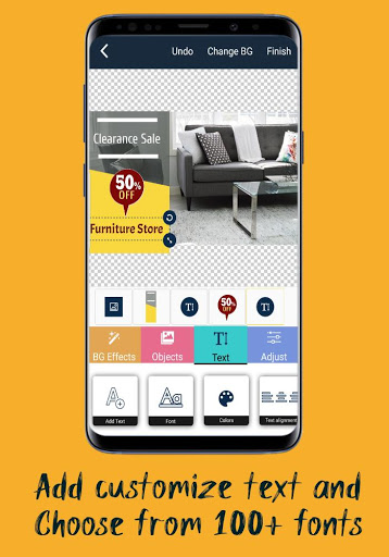 - Add Custom text on your banners from 100 fonts, choose the colours, adjust the size, add outline and change the font styles.