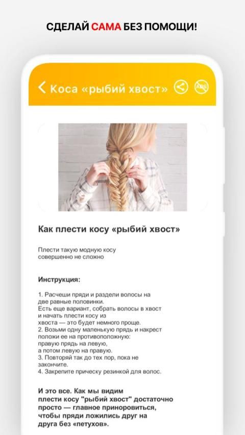 The application contains a wide catalog of hairstyles for any type of hair. Here, for example, you will learn 5 easy hairstyles that will suit absolutely every girl.