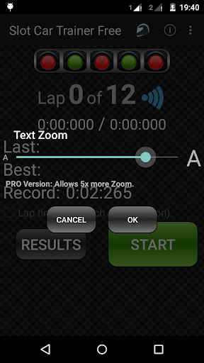 Only with your device and "Slot Car Trainer" you will have a chronometer and lap counter for any scale, analog or digital, electric slot cars track (like Scalextric®, Ninco®, Carrera®, Superslot®, FastLane®...).