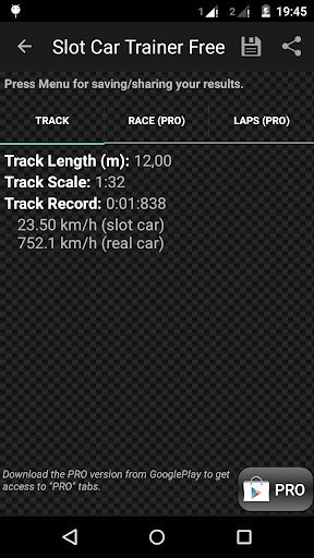 - Track (Free/PRO): length, scale and record lap (time&speed).