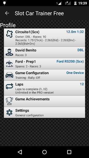 - Race (PRO): Number of laps, total time and time&speed of fastest, average and improved average laps.