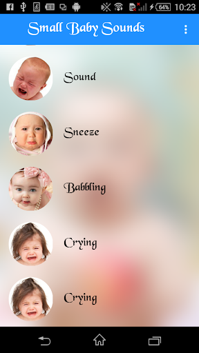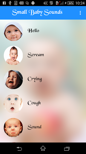 App contains real baby sound collections. Infants sounds in HD quality. Give your child a virtual friend. Best sounds for all baby emotions. Hear babies laughing, crying, yelling, screaming, coughing, babbling, seezing, the first word