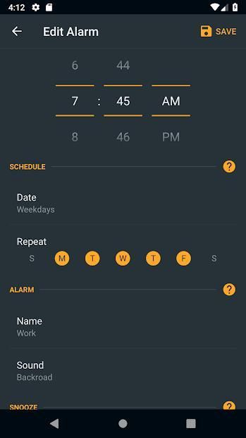 The alarms you can set are fully-featured with one-time date selection or weekly repeats, snooze with intervals and repeats, optional alarm name, full ringtone selection, and vibration support.