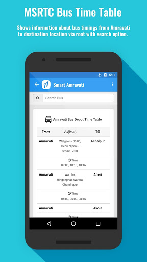 ★ Bus – Shows information about bus timings from Amravati to destination location via root with search option.