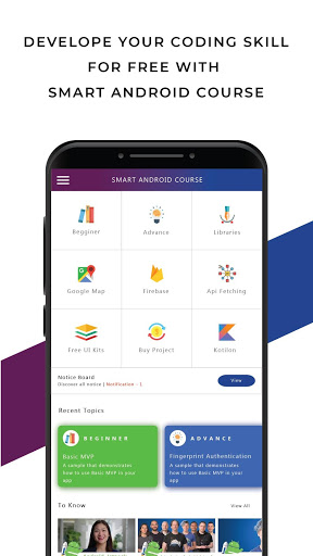 Smart Android Course is outstanding among another android advancement instructional tutorial application for designers and developers around the globe. We are a non-benefit association with an open-source instructive application with the point of 'improving android development by giving a free world-class instructional exercise for anybody anywhere. Using the application you can learn android simply by well-ordered procedure with the source code download work.