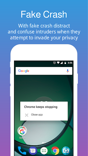 Another important feature in AppLock is Fake Crash. You can even hide the fact that lock the app with fake error message window.