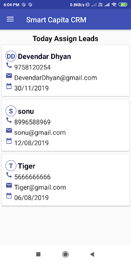 3. View Leads with Name, Email id, Contact Number, City, Created date, Created By, Follow UP Date, Assigned By, Assigned Date, Previous Remark etc