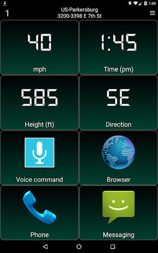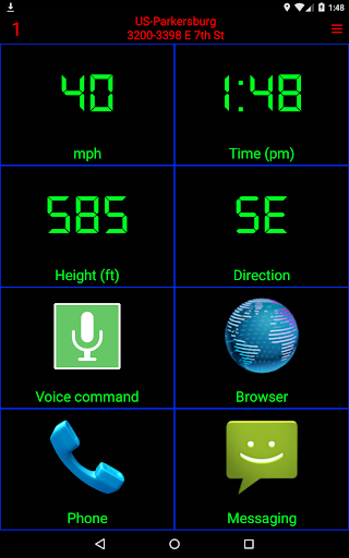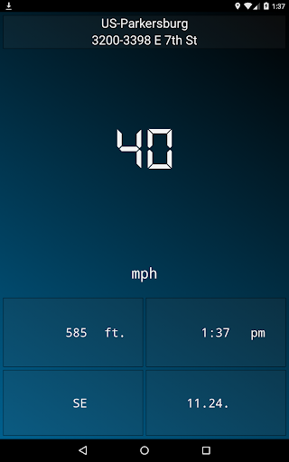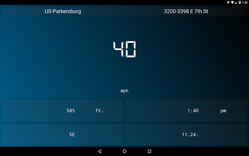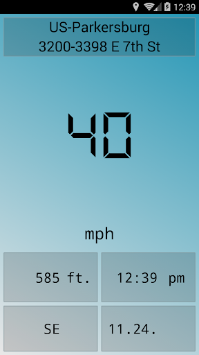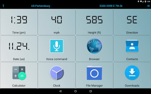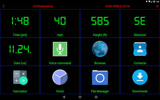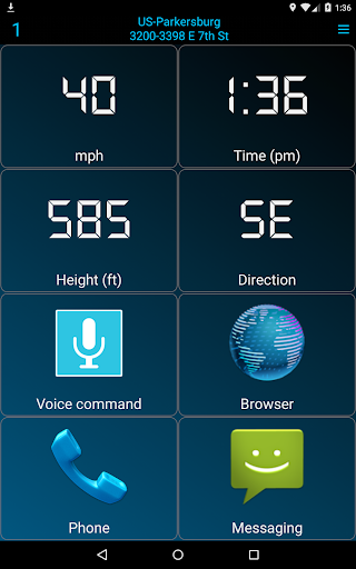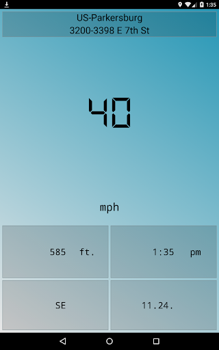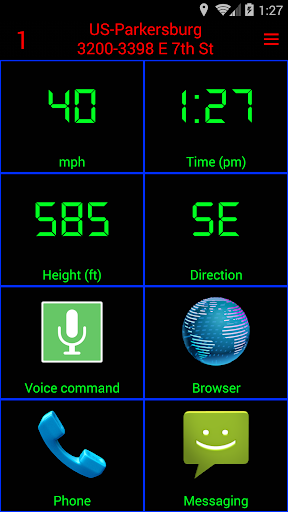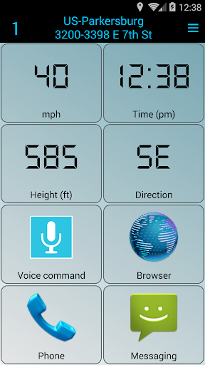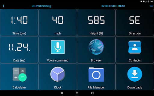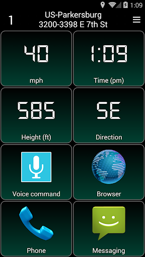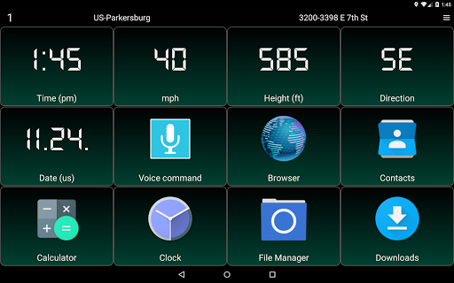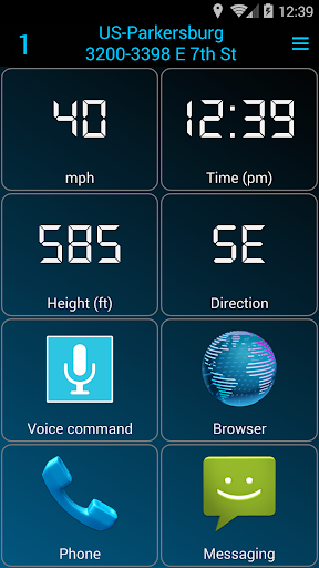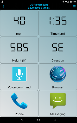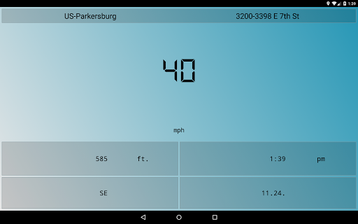 . In this view you can see the current velocity, altimeter, driving direction, time and date. Depending on which mentioned element was clicked in the main-app, this element will be as large as possible in the center of the cockpit-view. All the other mentioned elements are placed around this element. The cockpit-view can be left again by clicking anywhere on the screen.
