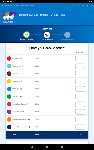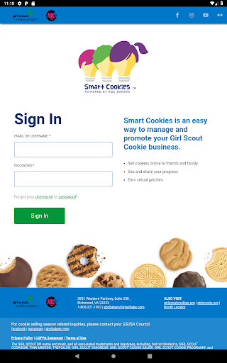 To use this app, Girl Scouts must have a valid username and password on Smart Cookies (ABC Bakers’ Cookie Command Center), available exclusively at abcsmartcookies.com. Smart Cookies Mobile allows girls to sell Girl Scout Cookies and track sale progress right from their mobile device!