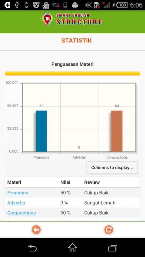 - Grafik Penguasaan Materi. Kamu bisa mengetahui dimana kelemahan dan kemampuan kamu, dari berbagai kategori yang disediakan.